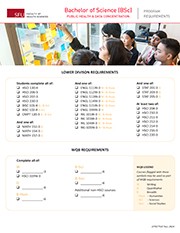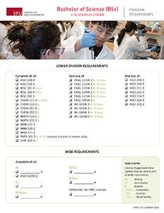 Full course requirements for undergraduate programs in Health Sciences can be found on the SFU Academic Calendar. Where a discrepancy arises between the Academic Calendar and a website or checklist, the calendar should be considered correct.